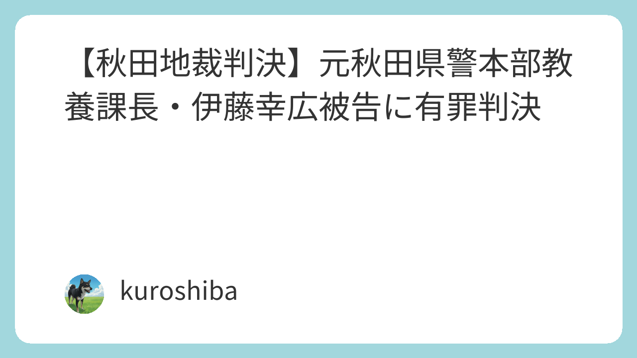 令和7年10月23日、秋田地方裁判所は、ストーカー規制法違反および偽計業務妨害の罪に問われた伊藤幸広被告(60)に対し、懲役2年・執行猶予3年の有罪判決を言い渡しました。