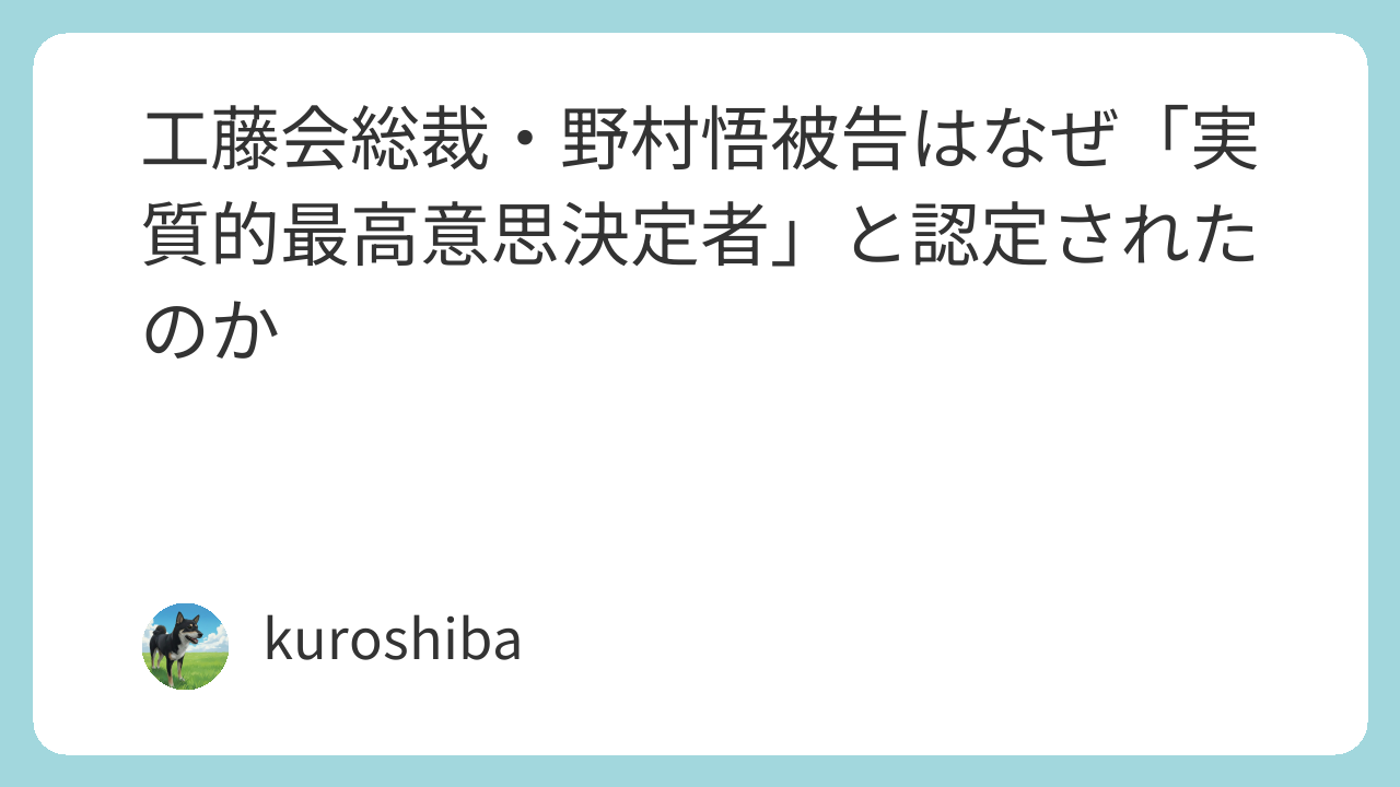 ただし、「組織の実質的トップとしての責任」は明確に認定